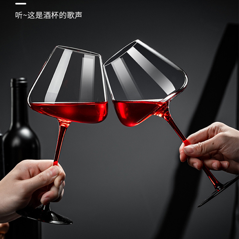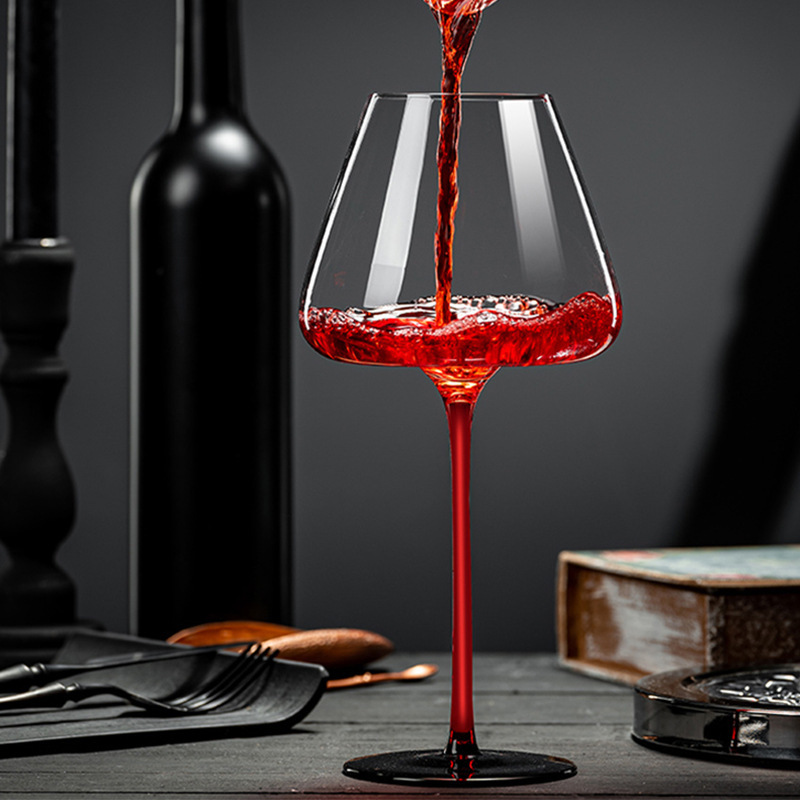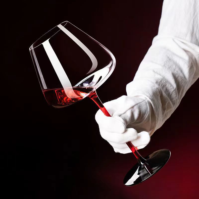 Ly Rượu Vang Thủy Tinh Chân Đỏ Đen 700ml